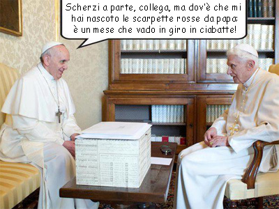 | 14 Aprile 2013: Papa Francesco era stato a trovare il suo predecessore, abbiamo carpito una parte di quello che si sono detti. | ||