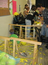 Dopo il pranzo i papà danno una mano, anzi due, per sistemare i tavoli |